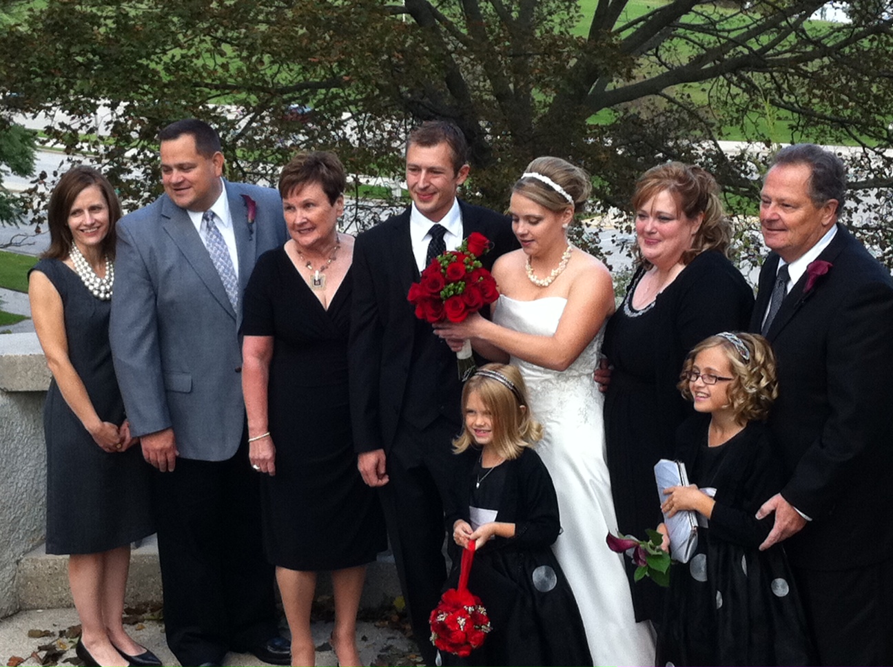 The bridesmaids, nieces, and the happy couple. |