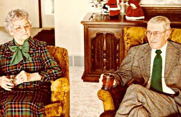 | Eleanor and Frank Smith at Christmas in 1980. For those of use who remember, they were quite the "clothes horses." Frank was 10 years older than his niece, Mary Cecile Smith of Stickney, SD. |