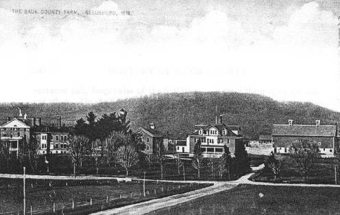 This institution started as a poor farm in 1871. The brick insane asylum structure (40 by 60 feet, two stories and a basement) was constructed in 1886, and the first admissions were five patients at the beginning of 1887. As of 1918, the capacity of the asylum was 100, of which most were from Sauk County.