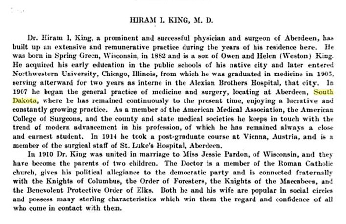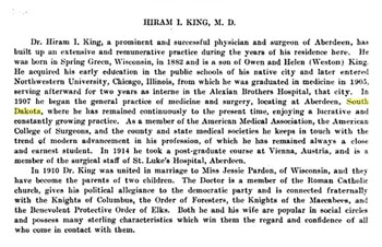 ![]() Top: The King family lived in Bear Creek, Wisconsin - one of the neighbors of Smith and Rooney families. How do they tie into Allamakee and our family? H.I. King (Left), a great-grandson of Dr. King, traces his lineage to Irish John Smith family of Kimball and the Edward Hill family of Harpers Ferry (Allamakee). |