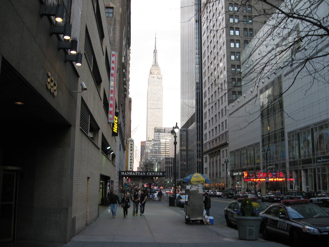 ![]() Looking down the "canyons" of Manhattan and spying the Empire State Building. |
