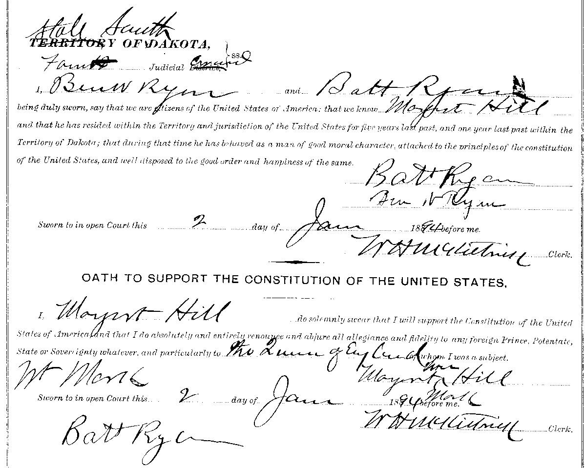 ![]() (Above) Batt Ryan Oath of Allegiance (Click to Enlarge) (Right) John Smith Oath of Allegiance (Click to Enlarge) (Bottom) Margaret Hill Oath of Allegiance (Click to Enlarge)