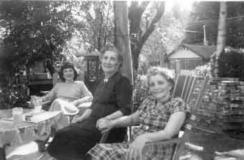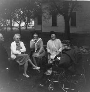 (R-L) Mary Smith, Mary Cecile Smith, Mildred Fox, neighbor across the street,, Frank Ryan mid 1960s (Click to Enlarge)