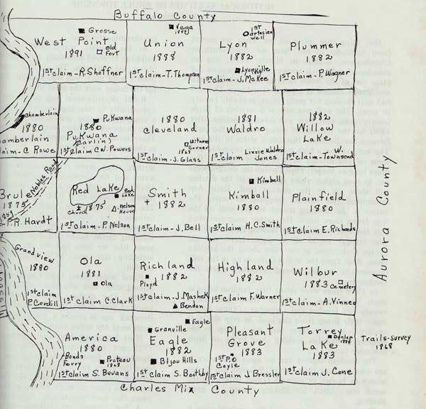 "for a number of years succeeding 1886, drought and hot winds were so destructive to crops in Brule county - that large sections of the county became deserted.
