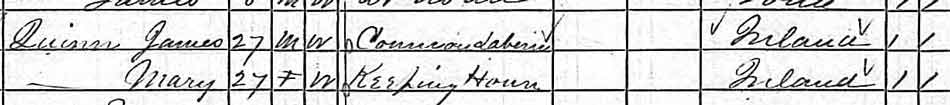 Mary Hill Until recently we didn't know what happened to Mary Hill. The only clue we had was a reference in Margaret Hill's Estate which only said "Mrs. Quinn." (see Estate). It also noted that she lived in Chicago, and as Quinn is a fairly common name in Chicago, we initially thought we would never be able to find this family. The clue to their whereabouts, surprisingly, was already resident on this web site. We currently have over 3,300 pages of information, and we continue going back to earlier content to see if something we thought was "unimportant" really is "important." In this case, it was a reference to Anna Murrin, a young servant girl, living with a James Quinn family in 1880 Belvidere. One thing about researching families using census information - there was no check on the accuracy of the information provided to the early census taker. Dates of birth tend to fluctuate, which in some cases probably was a misunderstanding by the census taker. So too, children's names also change over time. In Mary's family, this certainly was true as well. Easy ones like "Ellen" bec0ming "Ella" is understandable. "Joseph" becoming "William" is a little more difficult to rationalize, although this seems to be very common among the Irish. In some cases, the person begins using either their real name or middle name...and in some cases, they decide to "just change their name." The above census records the Quinn family from 1870 to 1910. Their story is as follows. Mary Hill and James Quinn were wed in 1868 and a year later they had their first child, Edward. They were living in Lafayette township, which was next door to Taylor township where Mary was raised in Iowa. James's occupation was listed as "Commerce Laborer." The next time we see this family, they were living in Belvidere, Illinois. James was now listed as a "traveling merchant", and increased their family in 1880 to four children: Edward, Anna, Jane and Ellen. Living with them was a 16 year-old girl by the name of Anna Murrin. She was listed as a servant, most likely nanny, to help with the growing Quinn family. Interestingly, the Quinn family still owned a farm in Lafayette township even as late as 1886. (See record). But Mary E. Quinn is shown as the owner of this farm, and not her husband, James. As most census records were destroyed by fire in 1890, the next time we see this family was in 1900. At this time, they are living in West Chicago. The census notes that they have 7 children, although only 6 were living with them. Here is where we begin to see slight changes in the children's names. William is now Joseph (although in the next census he is again seen as William), Anna become Annie, Jane becomes Jennie, and Ellen becomes Ella. James occupation is a little fuzzy - it seems that his new job was "gas filler". Their oldest son was a Barber, and several of the girls occupations was listed as "dress makers." By 1910, James Quinn no longer appears in the census records, and we see the Mary Quinn and her son William were now living with the Kerr family in Chicago's Precinct 13 district. Ella had married Samuel Kerr and by the 1910 census, and may have been married in 1906 as the oldest of their two children was born in 1907. In 1910, Samuel's occupation was listed as a "laundry man", but in 1920 he now owned a candy store in Chicago. By 1920, we don't see Mary or William living with the Kerr family. It will require a little more work to see if she had died between 1910 and 1920 or had moved elsewhere in the Chicago area. |