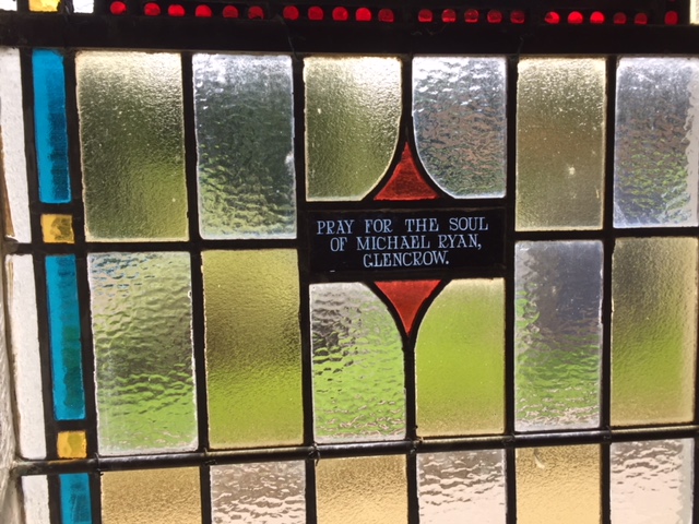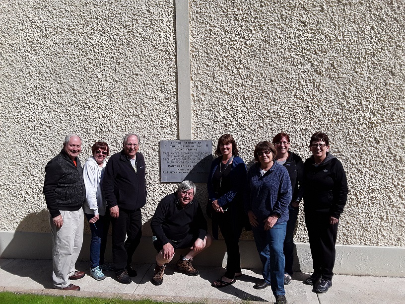Our first stop was the church. On the exterior, the church has a plaque dedicated to the victims of the Great Famine. As many local families left due to the potato blight and subsequent plague, it seemed appropriate that we take a photo in front of this plaque memorializing famine victims. While the Ryans came to America in the 1860s, Bartholomew Campbell, Nancy Ann Campbell Ryan's brother, came to Iowa earlier in the 1850s. |
