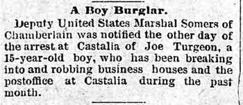 These two articles are about a young Turgeon male who went on a crime spree in Brule County.