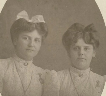 Blanch Turgeon with Becky (Rebecka), daughters of Onesime and Desange Turgeon. They lived in La Rouche, Charles Mix County, South Dakota. Blanche married Alfred Johnson, and died in 1949 in Edgemont, Fall River County, SD.